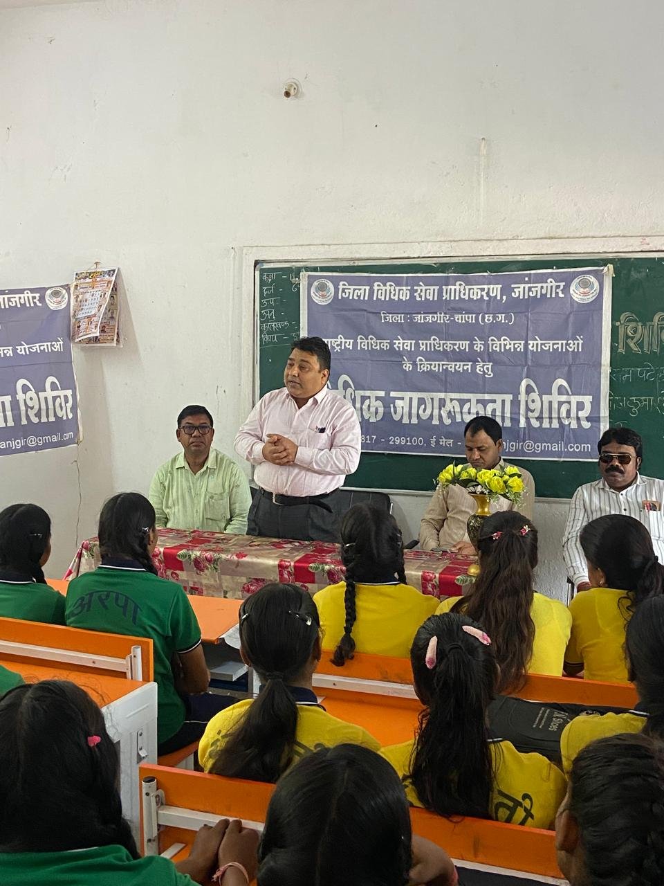 उन्होंने बच्चों को अपराधों से दूर रहने, शिक्षा और विकास पर ध्यान केंद्रित करने तथा हमेशा कानून के दायरे में रहकर समाज में योगदान देने की प्रेरणा दी। श्री मनोज कुमार कुशवाहा, सचिव, जिला विधिक सेवा प्राधिकरण जांजगीर-चांपा ने NALSA की विभिन्न योजनाओं — साथी, डॉन, जागृति — की जानकारी दी और हेल्पलाइन नंबर 15100 के उपयोग के लिए जागरूक किया।विद्यालय के प्राचार्य श्री बी.के. देवगन ने विधिक जागरूकता की आवश्यकता और समाज में बढ़ते अपराधों पर विस्तार से चर्चा की। उन्होंने मंच संचालन एवं आभार प्रदर्शन भी किया। इस अवसर पर श्री जयराम गढ़ेवाल, सहदेव दास महंत (पैरा लीगल वालेंटियर), कोमल प्रसाद साहू, रमेश साहू, टी.आर. कुर्रे, घनश्याम प्रसाद साहू, हरिश्चंद्र देवांगन, सविता साहू, आर.पी. कश्यप, सी.एस. देवांगन, व्ही.एल. जलतारे, व्ही.पी. तिवारी, यू.के. शर्मा, समस्त व्याख्यातागण, प्रधान आरक्षक विजय निराला (थाना शिवरीनारायण) एवं बड़ी संख्या में छात्र-छात्राएं उपस्थित रहे।