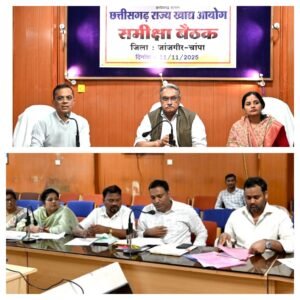 जांजगीर-चांपा,,, छत्तीसगढ़ राज्य खाद्य आयोग के अध्यक्ष श्री संदीप शर्मा की अध्यक्षता में तथा आयोग की सदस्य श्रीमती ज्योति कश्यप, कलेक्टर श्री जन्मेजय महोबे, जिला शिकायत निवारण अधिकारी एवं जिला पंचायत के मुख्य कार्यपालन अधिकारी श्री गोकुल रावटे सहित अन्य अधिकारियों की उपस्थिति में कलेक्टर कार्यालय में बैठक आयोजित की गई।
