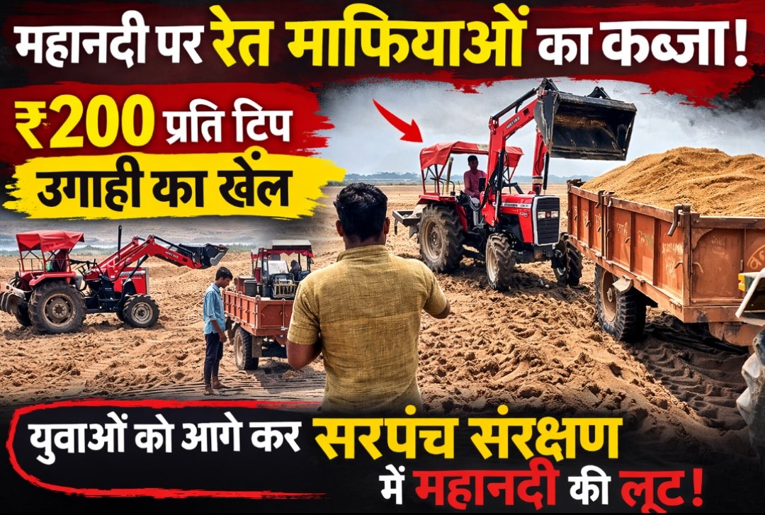 महानदी का सीना छलनी: युवाओं को आगे कर रेत माफियागिरी, सरपंचों के संरक्षण में लाखों का अवैध उत्खनन! हर ट्रिप पर ₹200 की उगाही, खनिज विभाग की कार्रवाई सिर्फ हाईवे तक सीमित – जल्द होगा नामों के साथ बड़ा खुलासा।